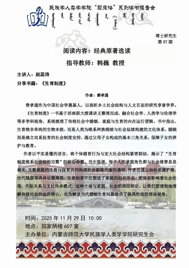 十大老虎机网站 “碧立格”系列读书报告会预告博士研究生第97期