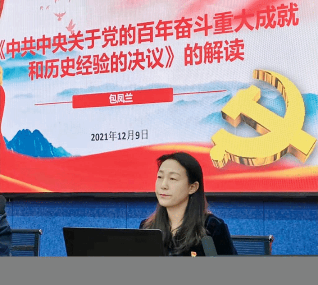 党委书记包凤兰在田楼615学术报告厅为全院教工解读党的十九届六中全会精神。会议由老虎机