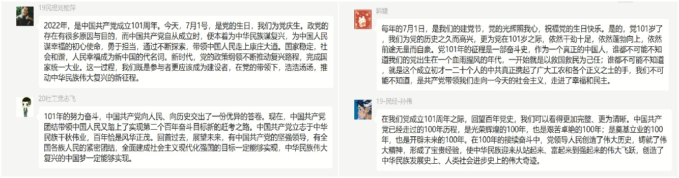 此次主题党日活动依托党员微信群开展,由党支部副书记桂梁同志带领全体党员同志开展以“中国共产党成立101周年,弘扬伟大建党精神”为主题的线上自主学习活动,党员同志们热烈祝贺党的101岁的生日并交流学习心得,爱国爱党情怀高涨,同志们纷纷表示要以革命先烈为榜样,认真学习他们不怕流血牺牲,甘于无私奉献的精神,坚定理想信念、不忘初心、牢记使命,为推动党的事业贡献自己的力量。