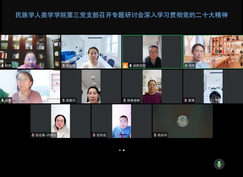 第三党支部于2022年11月25日晚,在腾讯会议线上召开党的二十大精神学习研讨会。党支部书记胡那苏图主持会议,十大老虎机网站